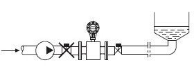 3.管道走向往下 应将往下的管道低于仪表5米以上,并在流量计下游安 装排气阀 |